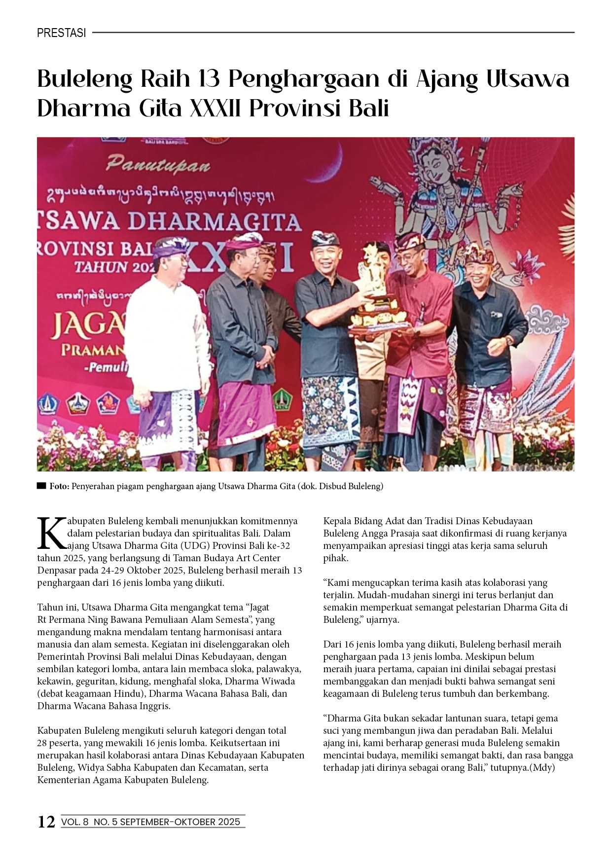 Buleleng Raih 13 Penghargaan di Ajang Utsawa Dharma Gita XXXII Provinsi Bali