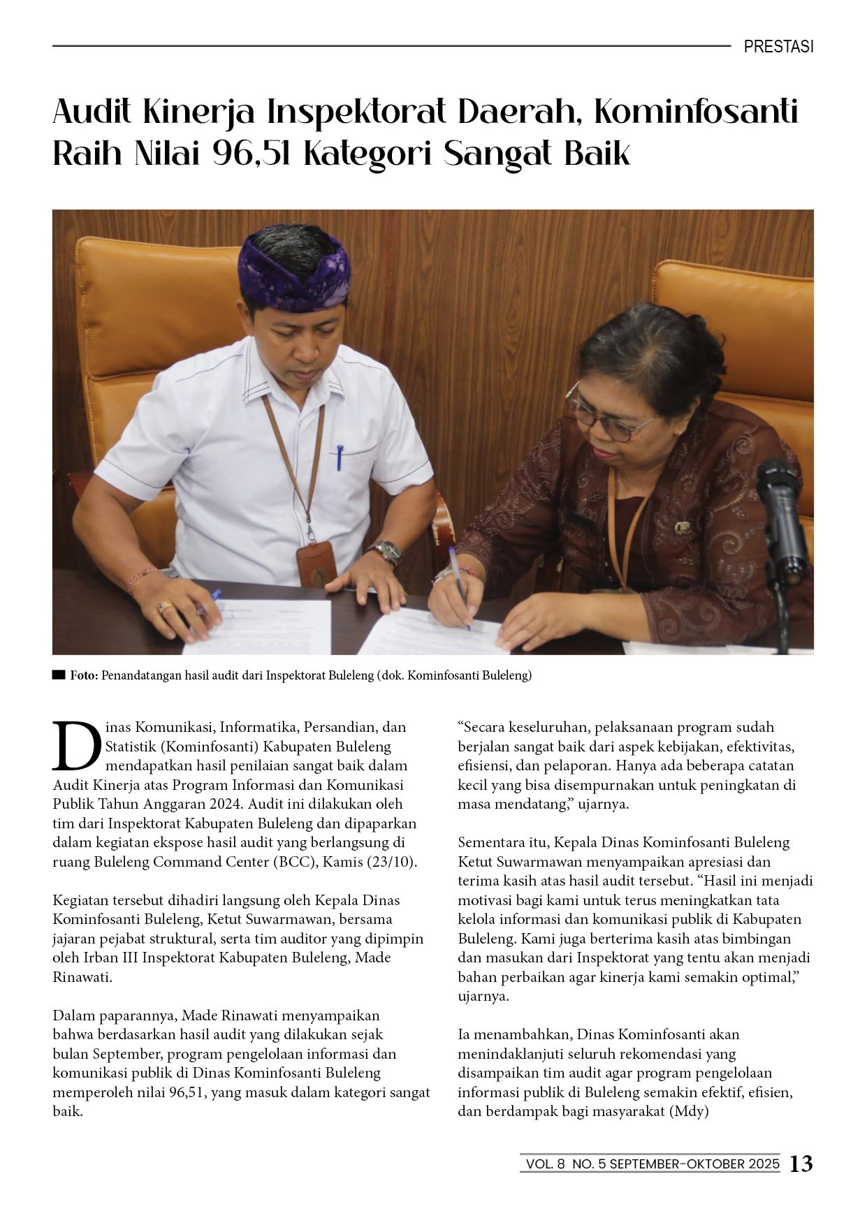 Audit Kinerja Inspektorat Daerah, Kominfosanti Raih Nilai 96,51 Kategori Sangat Baik