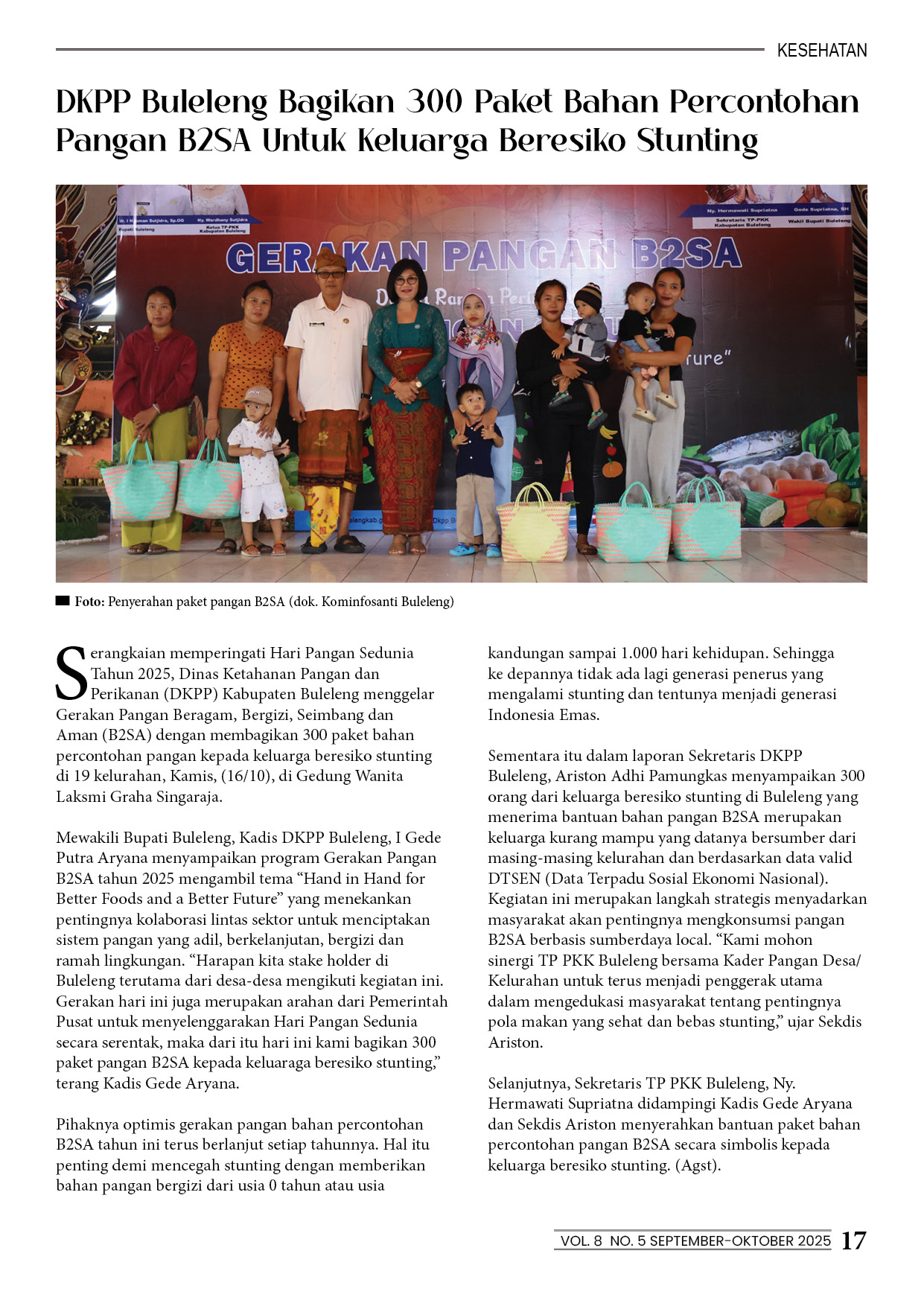 DKPP Buleleng Bagikan 300 Paket Bahan Percontohan Pangan B2SA Untuk Keluarga Beresiko Stunting