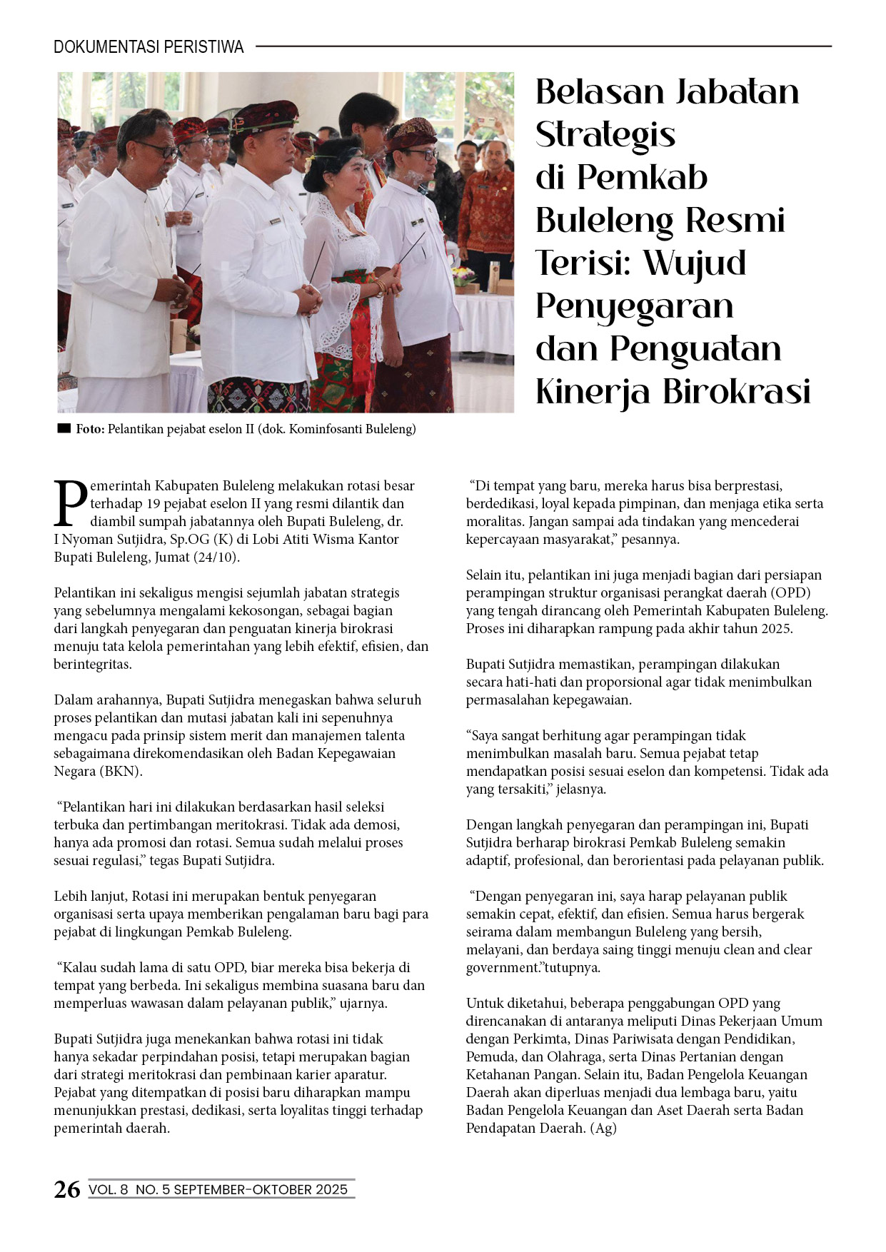 Belasan Jabatan Strategis di Pemkab Buleleng Resmi Terisi: Wujud Penyegaran dan Penguatan Kinerja Birokrasi