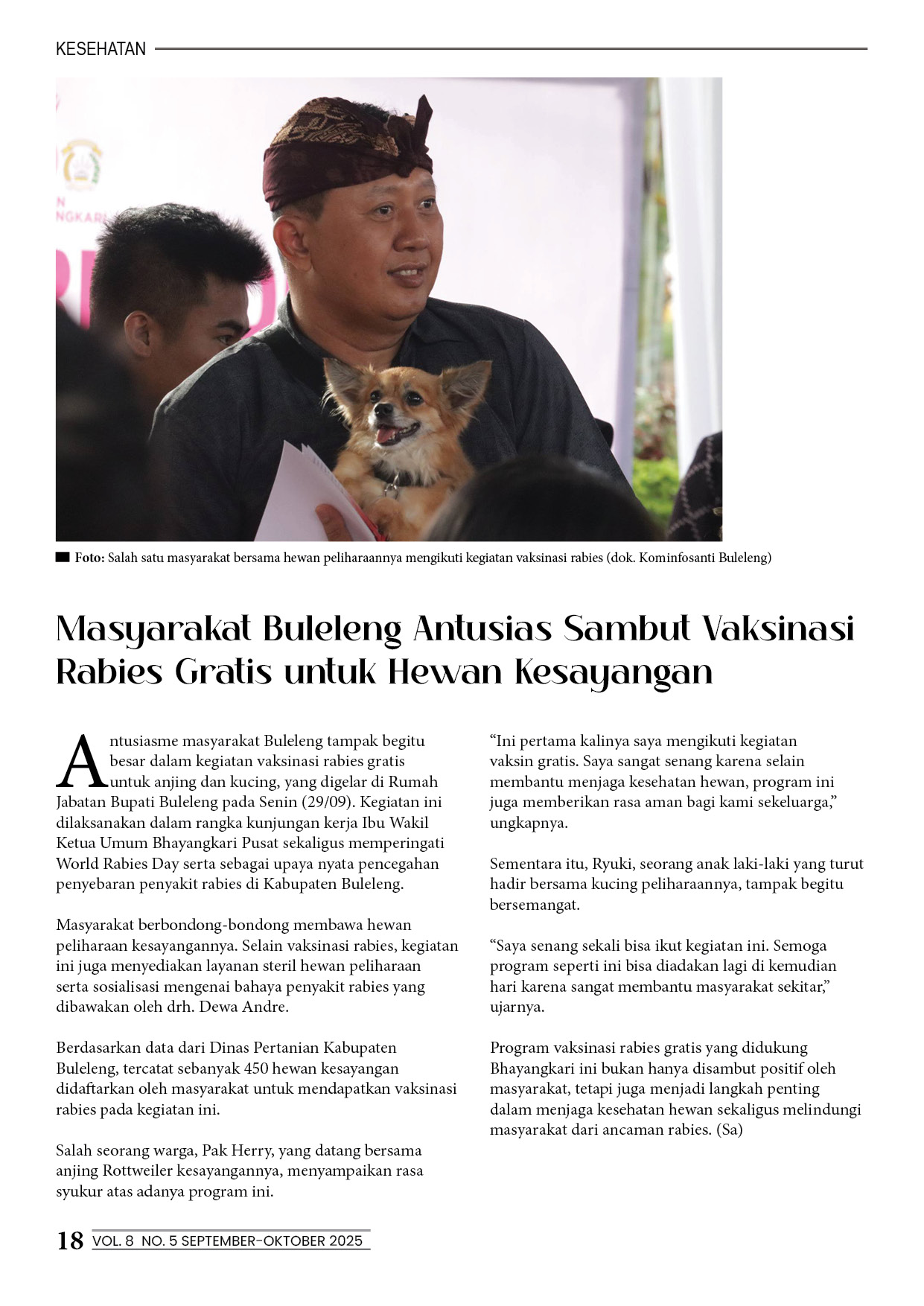 Masyarakat Buleleng Antusias Sambut Vaksinasi Rabies Gratis untuk Hewan Kesayangan