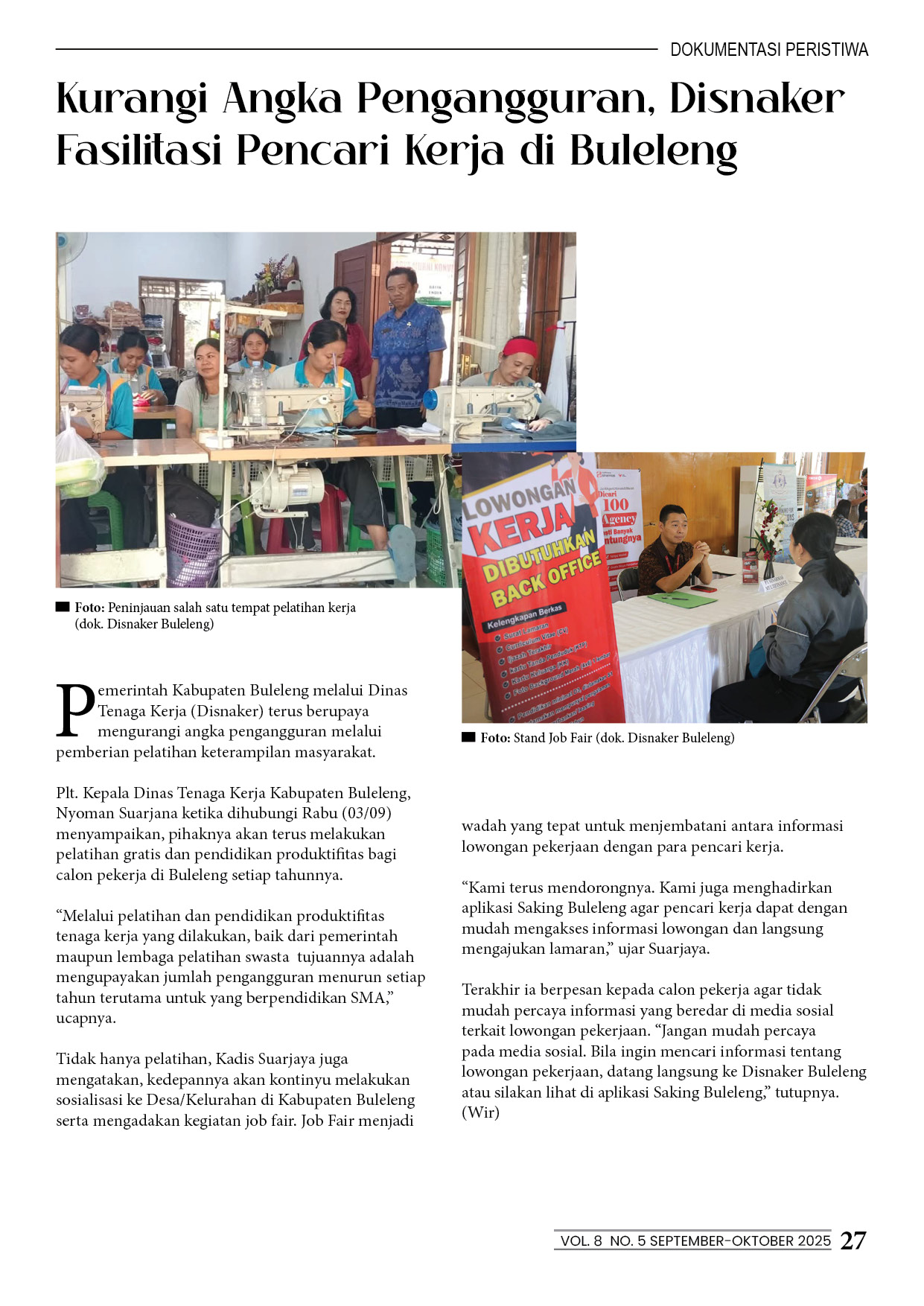 Kurangi Angka Pengangguran, Disnaker Fasilitasi Pencari Kerja di Buleleng